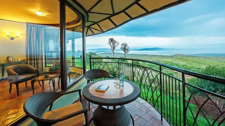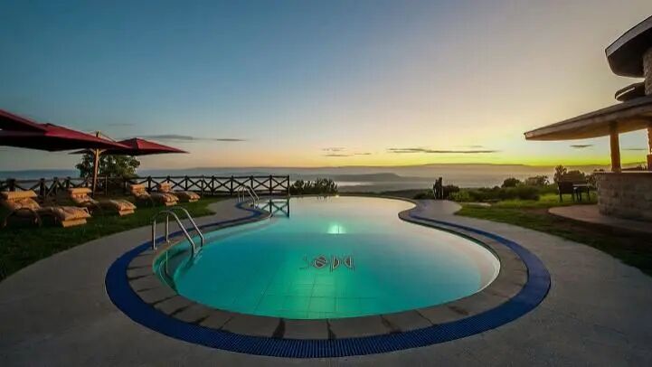 酒店建在私人保护区内。酒店主餐厅百米开外有个水坑,整个保护区的动物经常会来喝水,包括野象群!坐在餐厅就餐就能直接看到各种动物在附近。最有特色的是酒店正对乞力马扎罗山,酒店让每一位住客每天一睁眼就能望见雪山,连床都不用下。 纳库鲁国家公园内酒店 Lake Nakuru sopa Lodge