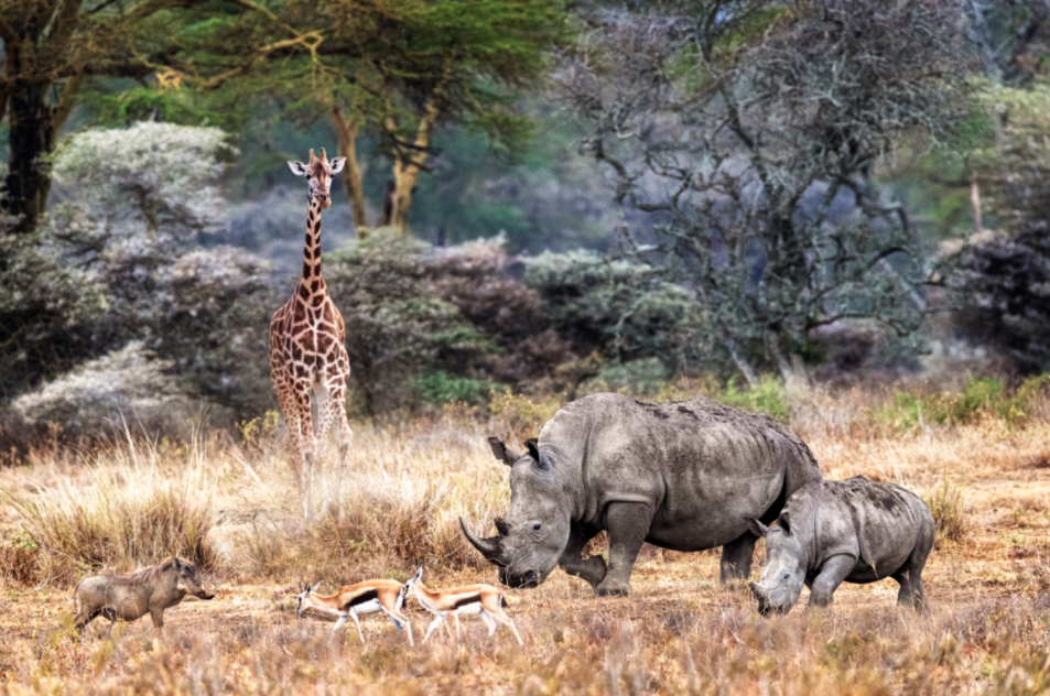 酒店坐落在山顶上,不仅可以俯瞰整个纳库鲁湖,甚至可以将整个纳库鲁公园尽收眼底。每一间客房,都面对着湖景,在餐厅,可以边吃边俯瞰纳库鲁湖。走在酒店里,随时都有长颈鹿随行在旁,高耸入天的树上栖息着美丽的雁鸭、靠湖的草原有成群的斑马,傍晚还有上岸觅食的河马。 DAY1 8月18日 国内-内罗毕-安布塞利 清晨落地肯尼亚乔莫肯亚塔机场,导游机场外接机,之后驱车前往安布塞利。抵达后前往Elerai Community Bednight & Wildlife Conservation 私人保护区入住 午餐后下午安排丛林徒步,日落鸡尾酒,在私人保护区内开启首次游猎,如果幸运的话你会看到几十只大象从你的车旁跑过,体会人与动物近距离接触的感觉,但更幸运的可能是从房间内就可以拍摄到以日落黄昏照耀下的乞力马扎罗山为背景,野生动物活动照片,绝对能让你有所收获。