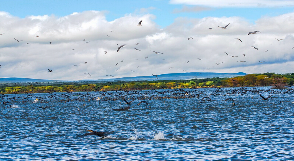 纳库鲁国家公园 纳库鲁国家公园是非洲第一个为保护禽鸟专门建立的国家公园,也是全世界能观赏到野生白犀牛的为数不多的野生动物保护区之一。被誉为“观鸟天堂”。园内有约450种禽鸟,尤以火烈鸟而闻名于世。处于火山带,湖水盐碱度较高,适宜作为火烈鸟主食的浮游生物生长。约有火烈鸟200万只,占世界总量的三分之一。