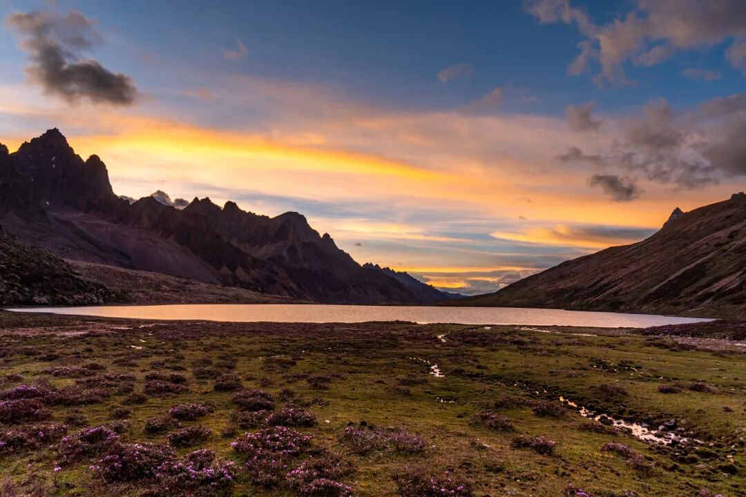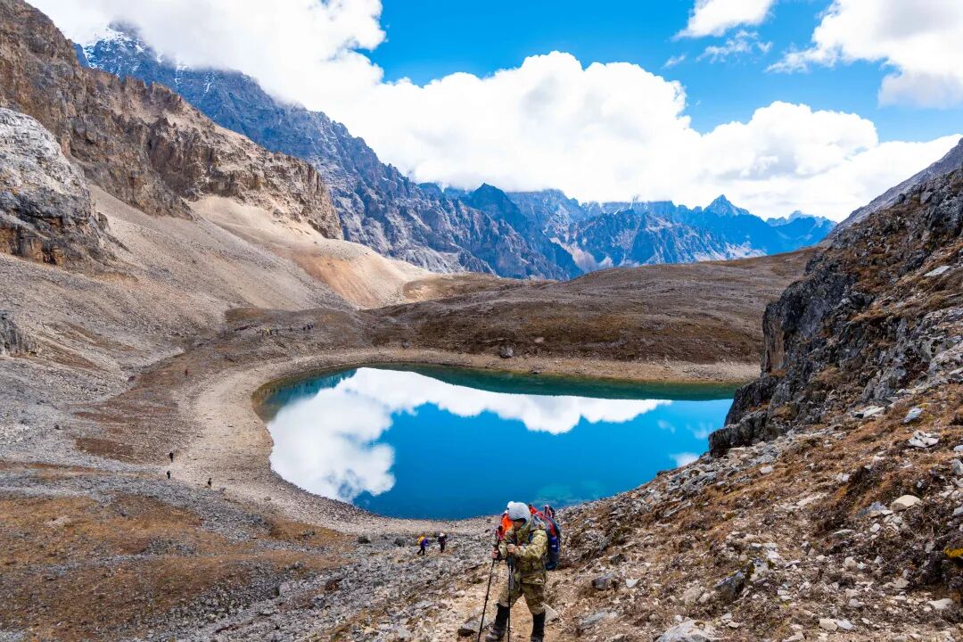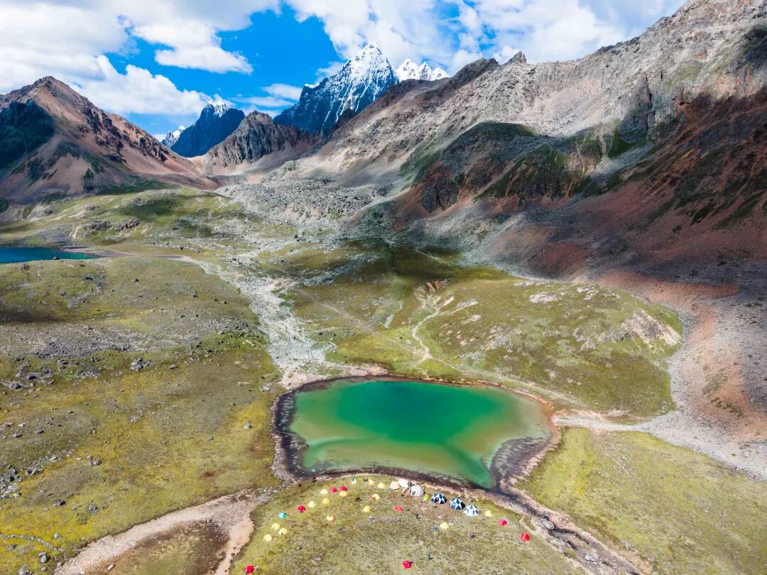 或许你应该在这里熙熙攘攘之前,来找寻他念他翁之下的一份静谧。 ![]() 线路介绍 他念他翁山,位于西藏东南部,属于横断山脉,与伯舒拉岭、芒康山并行,是唐古拉山脉的南延山脉,也是澜沧江与怒江的分水岭。 他念他翁的山,险峻挺拔,千姿百态,大多山体风化破碎严重。其最高峰大米勇雪山,周围林立着众多5,6千米的雪山,巍峨壮观! ![]() ![]() ▲大米勇雪山 他念他翁徒步路线,我们通过多次探路和完善,在保证线路安全和难度的情况下,现已独家规划上线,线路涵盖了他念他翁山脉最精华的风景。 ![]() ▲错浪波全景 ![]() ![]() ▲错浪波拍摄大米勇雪山倒影 他念他翁之美 ◆雪山——任何一条高海拔徒步路线,缺乏了雪山都是不完整的。在他念他翁,大米勇便是其最瞩目的雪山,它雄伟壮阔的身姿是不可错过的一道风光。 ![]() ▲大米勇雪山 达美拥雪山,俗称“大米勇雪山”,是他念他翁山脉的主峰,海拔6324米,山体雄伟,常年积雪可达腰身。在徒步过程中,有多处不同角度的观赏点。 ![]() ![]() ▲大米勇西南侧视角 ![]() 除此之外,徒步中还可以看到大米勇周边其他的5,6座雪山,与之一字排开,连绵漫长。 ![]() ![]() ▲朗格曲吉普宗峰,位于大米勇西侧,下方是错呷婆湖群。 ◆海子——若说,他念他翁与其他路线相比,最突出的地方是什么?那毫无疑问是星罗棋布的高原海子。这里每条山谷都存在着大大小小的海子,或翠绿或深蓝,或瑰丽或静谧,每一个都独特不凡,让人百看不厌! ![]() 揉错——有一种蓝叫“揉错蓝”,在他念他翁众多的海子之中,当属揉错最为超群。其海拔4700米,静卧于群山石峰之中。无论什么天气什么季节,它总能呈现出纯粹的蓝色,或浅蓝或深蓝。每年6月至10月是其最佳观赏期,由于海拔较高,其他季节则处于冰封状态。其惊艳之处,让每一个到往他念他翁的人儿,都充满憧憬! ![]() ![]() 加米错,是由三个大小不一、形色各异的海子组成,在山谷中依次排开。湖水根据光线不同、季节不同,显现出不同颜色。时而宁静祥和,时而波光粼粼。 ![]() ![]() ▲加米错 ![]() ▲加米错秋景 乌格曲隆错,位于大米勇西侧脚下,湖面辽阔,面积庞大,湖水呈现碧绿色。此处也是距离大米勇很近的观景点,湖面平静时可以拍摄大米勇雪山倒影及星空。 ![]() ▲航拍乌格曲隆错 ![]() ▲乌格曲隆错晚霞 吉错,位于山坳之中,湖水呈墨绿色,湖面平静时,如同一个巨大的染缸。夏季湖边草甸上开满紫色、黄色的花儿,星星点点,生机勃然;秋季的天空一片蔚蓝,在湖边可以看到大米勇一角。 ![]() ![]() ▲夏季湖边开满鲜花的吉错 错浪波——与吉错毗邻的便是错浪波,面积却大了几倍。湖水呈深蓝色,周围由山体风化塌落的碎石环绕。天气晴朗时可以在湖边观赏大米勇雪山,湖面平静亦可拍摄雪山倒影。 ![]() ▲错浪波 ![]() ▲航拍错浪波 ![]() ▲错浪波湖边拍摄大米勇倒影 错呷婆,位于朗格曲吉普宗雪山脚下,由三个主要湖泊及多个小湖组成。如同她的名字一般带有几分神秘,到过错呷婆的人也寥寥无几。湖水来源于雪山融水及雨季降水,呈现青绿色,常有成群的牦牛在湖边憩息。 ![]() ▲错呷婆 一些无名海子——在他念他翁,有许许多多没有名字的海子,询问过当地人也未曾可知。这些海子虽然无名,却毫不逊色,在大山之间安静低吟,亦为他念他翁增添了许多色彩。 ![]() ▲5号湖(左)与6号湖(右),位于南加拉古垭口南侧 ![]() ▲航拍5号湖、6号湖 ![]() ▲9号湖,位于真拉垭口南侧 ![]() ▲航拍9号湖 ![]() ▲17号湖,前往说拉垭口途中的海子 ◆五色花海——他念他翁除了不计其数的海子之外,最让人印象深刻的应该是夏季争奇斗艳的花海了。其花之繁茂,种类多样,是绝大多数户外路线所不能企及的。每年的6月~8月份,不同的种类的花海更迭呈现,这其中更有许多稀有物种! ![]() ▲南加曲隆一带的花海 6月是高山杜鹃的天下,漫山遍野盛开着杜鹃,几个杜鹃花谷更是惊艳所有来往者。 ![]() ![]() ▲雪山下盛开着不同种类的高山杜鹃 6月底7月初,杜鹃谢去,遍地便已开满鲜花,山间的牧场、草甸、路径旁……五颜六色,花团锦簇。 ![]() ▲雪山下的黄色花海 ![]() ▲切坛上方,满山坡的黄花 ![]() ▲南加曲隆牧场遍地黄花 而在这7~8月之间,山花竞相开放,种类繁多,可谓是“乱花渐欲迷人眼”! ![]() ▲切坛营地的花海 ![]() ▲多刺绿绒蒿 ◆五星营地——徒步过程中,营地是我们停留时间最久的地方,所以好的营地至关重要。每天的营地都有拍摄的绝佳机位,可以拍摄雪山、海子、星空。 ![]() ▲南加曲隆上方营地夜空全景 ![]() ![]() ▲一字泵营地拍摄银河 ![]() 南加曲隆上方营地,位于大米勇雪山南侧,地势开阔,群山环绕,是拍摄大米勇雪山的最佳营地。 ![]() ▲南加曲隆上方营地 ![]() 双湖营地,是此次行程的最后一天营地,也是拍摄星空银河的最佳营地。夜晚湖面平静,星光闪闪,雪山与银河倒影都洒落其中,极其震撼。 ![]() ![]() ▲湖边拍摄银河倒影 ![]() 行程简介 D1 丽江集合 D2 丽江-香格里拉-飞来寺-曲孜卡 D3 曲孜卡-拉岗-丁差错-错来-一字泵 D4 一字泵-加米错-龚拉垭口-切坛牧场 D5 切坛-旦马拉丁错-三岔口-火烧林-南加曲隆上方营地 D6 南加曲隆上方营地-5号湖-6号湖-南加拉古垭口-乌格曲隆错 D7 乌格曲隆错-真拉垭口-吉错-错浪波-双湖营地 D8 双湖营地-木多瓜金-布其克隆-说拉垭口(揉错观景点)-地泵-沙多村-左贡县 ![]() ▲他念